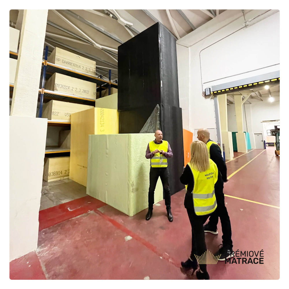 Náš tým se vydal na prohlídku, aby zjistil novinky ve výrobě matrací, použitých pěn, tak abychom vám doporučili jen ty nejlepší matrace. Brand manager Tomáš Konečný představil inovativní výrobní proces, který tato továrna používá k výrobě svých produktů.